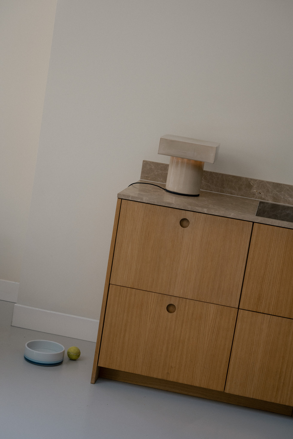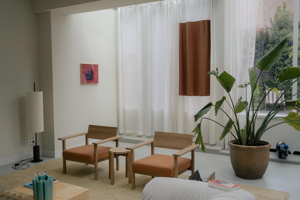 ‘Because of its minimalist design and beautiful materials. I really love the wood of the Base Chair — it's exactly my colour of wood. And I love the orange fabric, especially how it matches our rug and marble coffee table. They're surprisingly comfortable, too, which I secretly didn't expect!’